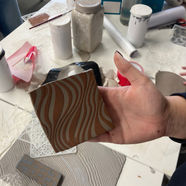The aim of this peer teaching workshop was to introduce peers to the creative possibilities of three various ceramic surface design processes. For this peer learning, student teachers were asked to reflect on their sense of being such as cultural heritage, identifying photographs, shape and patterns referential to their own personal meanings to explore surface impressions in clay. They explore water etching using wax resist and connecting it to its possibilities with visual studies, clay lithography using stains and gum arabic transfer techniques and finally stencilling/slip application using easy to make basic screens for printing/stencilling. By the end of the workshop, they gained practical skills in incorporating new surface design skills to clay that focus on colour, line, shape, pattern and texture and can be readily applied with previous learning regarding handbuilding.